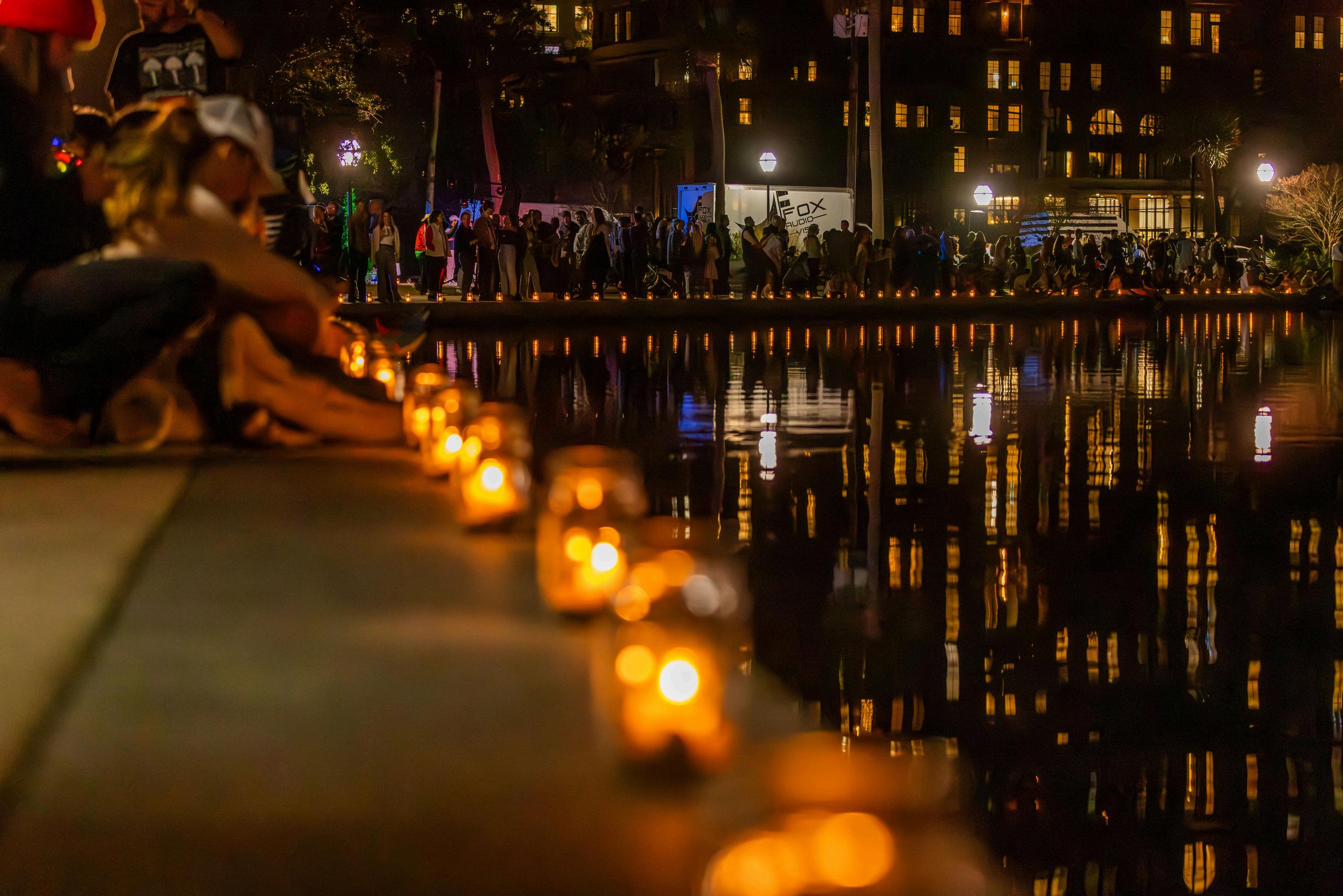Light the Lake, the Conservancy’s largest free community event saw record engagement and attendance with about 3,000 attendees at Colonial Lake. New for 2023, a holiday movie theater-worthy showing of ‘Elf’ premiered on a 60 ft. screen at Moultrie Playground, a food truck village lined Ashley Avenue with multiple vendors; all four corners of Colonial Lake held artists’ vignettes to engage attendees as well as encourage exploration of the park, Publix sponsored carriage photobooth with over 300 participants, and reusable eco-friendly glass mason jar luminaries supported by the community brought the lake to light for the evening.