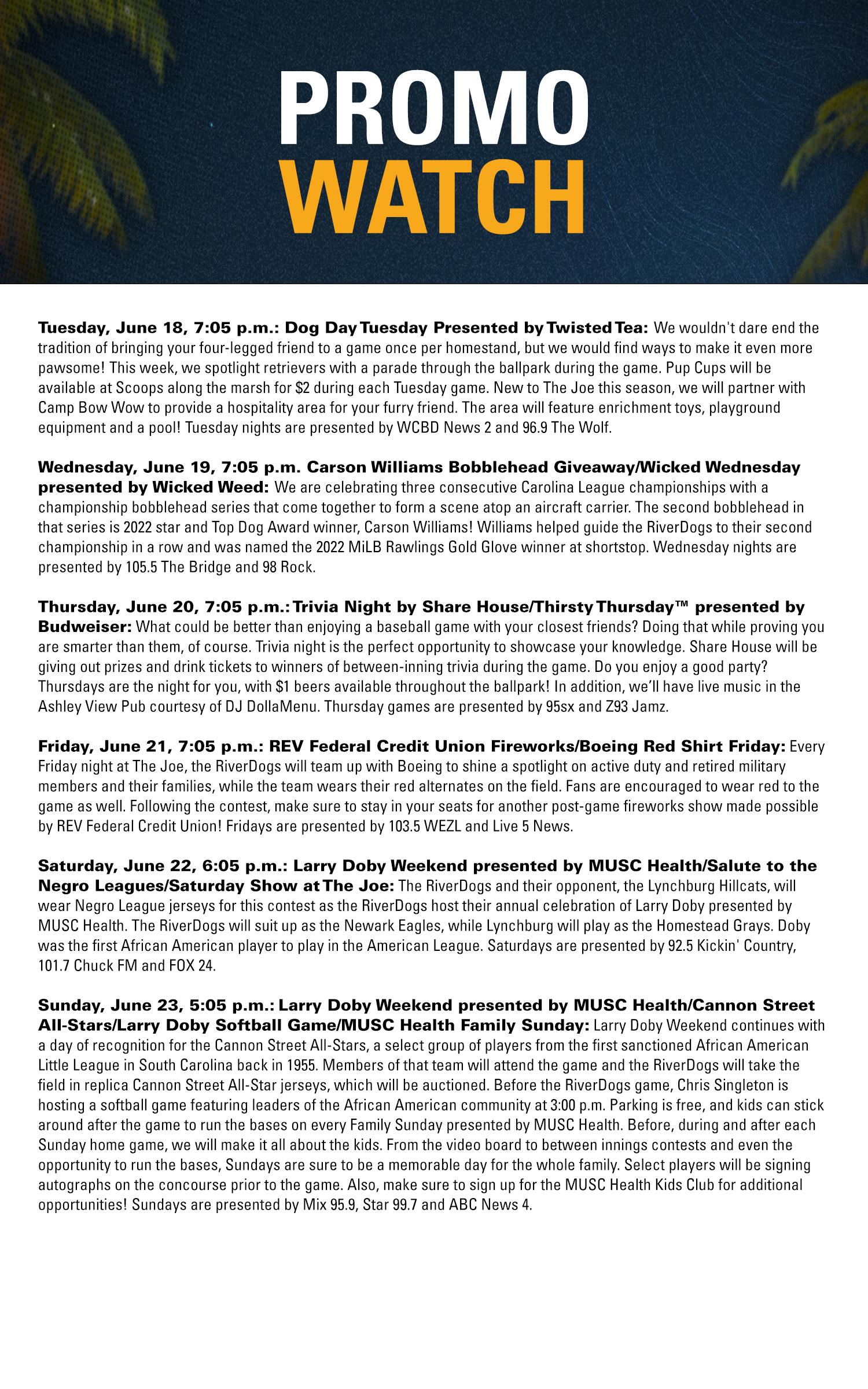 DONATE BLOOD FOR 2 TICKETS TO A FUTURE RIVERDOGS GAME + $30 IN REWARDS! thebloodconnection.org/riverdogs JUNE 12 | 12 - 5PM