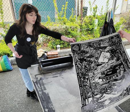 CWA’s Upper School Printmaking Class was one of only three regional schools invited to participate in the annual Wayzgoose Festival. The class carved a large linoleum block, which was printed with a steamroller.