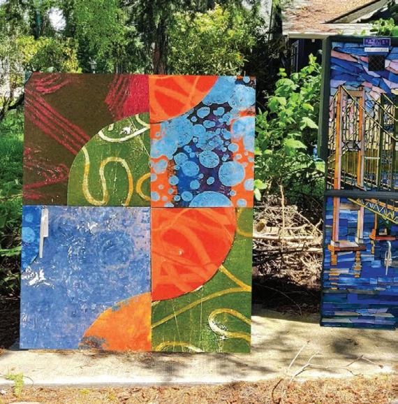 The Printmaking Class was selected for their collaborative jelly-print collage to be featured on a University Place utility box.