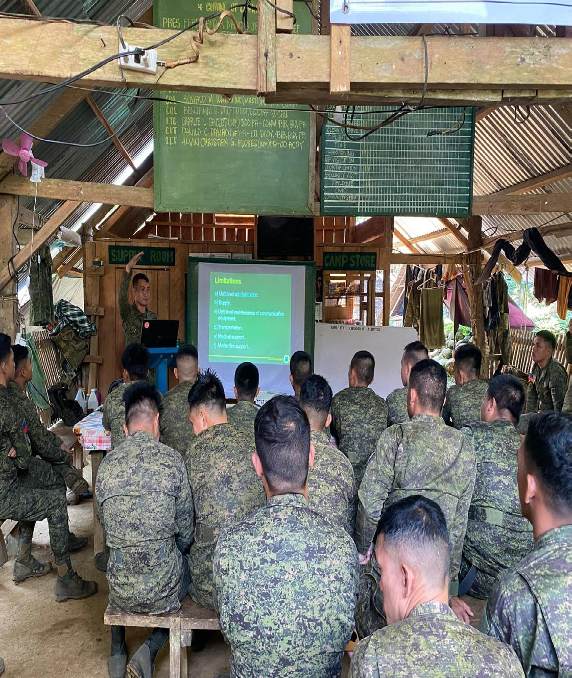 A true example of an empowering leader is one who not only recognizes the inherent rights and privileges of his constituents but actively supports and defends them to foster a culture of trust and loyalty. This leader ensures that each individual is given equal opportunities for professional development and career advancement, understanding that a well-equipped and motivated team is essential for mission success. Elevating the morale and welfare of the troops is a critical component of effective leadership and mission accomplishment. High morale fuels motivation, resilience, and a strong sense of purpose, especially in challenging and highpressure environments. LTC SACLOT’s stewardship, on his stint, adeptly gave premium to the morale and welfare by expediting the awards for the Bantay Kapayapaan Troopers as follows: