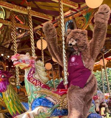 Our Charlie Bear skipped off in the sunshine and into the huge crowds, gave out high-fives and hugs and let everyone know where they could find our stand at the show . During this ‘hello’ tour, Charlie Bear heard fun and laughter, and went to explore There was a colourful display of games, rides, and even a Ferris Wheel Charlie Bear spied some horses and tried to outrun them on the merry-goround, but gave up and hopped on one for a ride! After some bear-illiant fun at the fair, Charlie Bear was back to work on our stand, and at one point he even had another Charlie Bears friend with him .