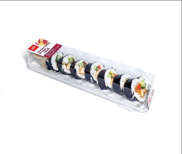 7 Tender panko coated chicken, red pepper & cucumber rolls, with a teriyaki mayonnaise sauce