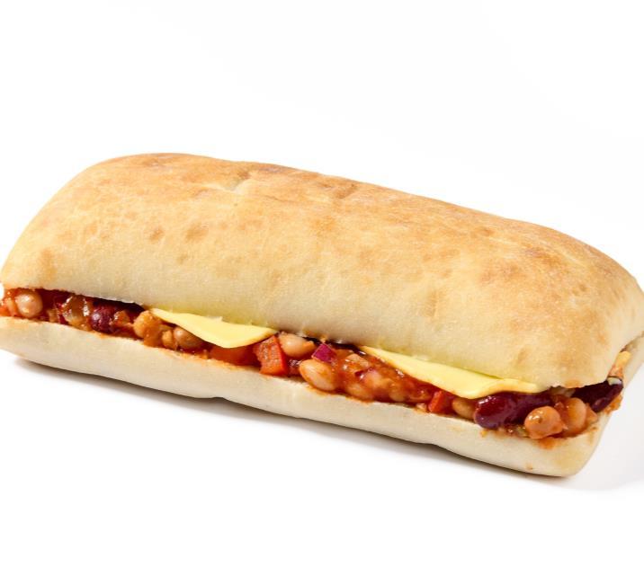 USP: Inspired by Mexican Cuisine, this ciabatta has a chipotle bean mix and melty mozzarella cheese. A great high protein vegetarian option.