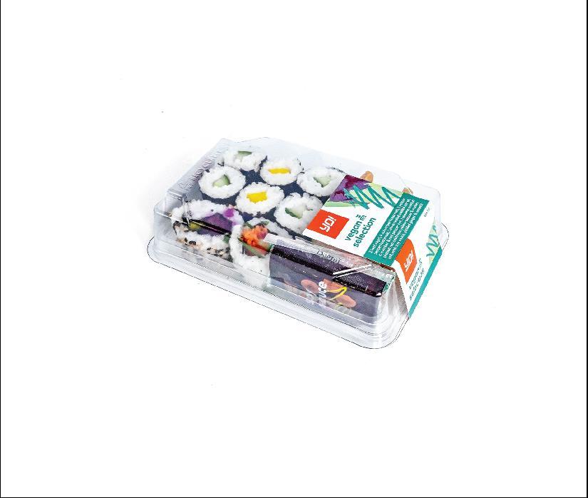 2 Inari nigiri, 4 cucumber hosomaki, 2 yellow pepper hosomaki, 1 chive coated pickled carrot, cucumber & red pepper roll, 1 sesame coated pickled red cabbage, yellow pepper & rocket roll, with soy sauce, pickled ginger & wasabi.