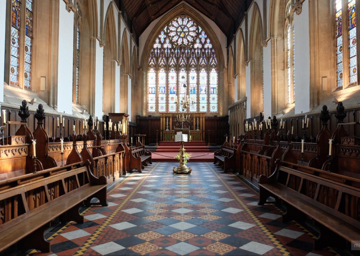 Kappeli on yksi vanhista oxfordissa. Rakennuksen suunnittelu alkoi 1280-luvulla ja ei ollut rakennettu loppuun. Pääsalissa on paljon luonnon valoa, kaikki värit ovat lämpimiä, materiaaleina on käytetty puu ja luonnon kivi. Katon korkeus on noin seitsemän metriä ja tila on noin viisi metriä leveä, nämä suhteet luovat turvallisen tunteen, lisäksi valkoisien seinien ja isojen ikkunoiden takia tila ei tuntuu liian massiiviselta ja visualisesti painavalta.