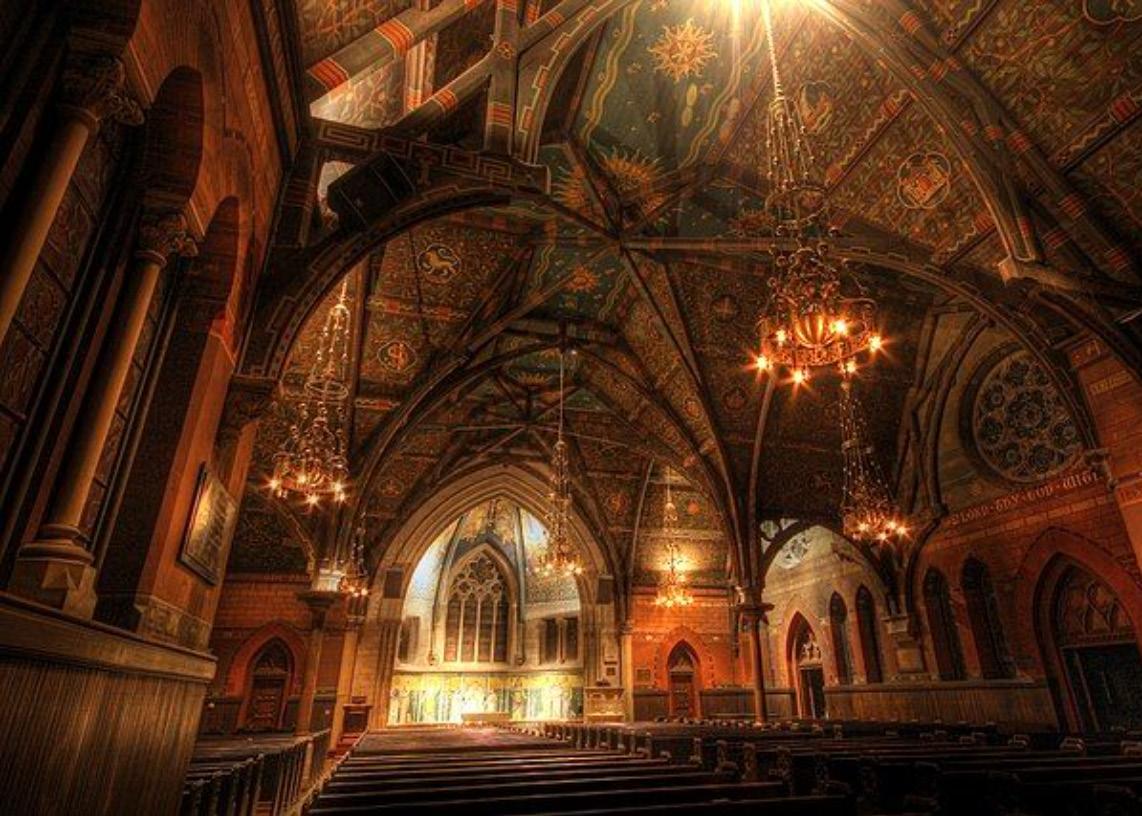 Kappeli on iso erillinen rakennus. Sisällä on tosi vähän luonnon valoa. Seinillä on ornamentteja, jotak voivat toimia sekä negatiivisena, että positiivisena hairityksenä, antamalla ihmisille jotkain kiinnostava katsotettavaksi. Tilassa on käytetty lämmin valaistus ja lämmin väripaleetti. Kappelin koko tekee siitä sopeutamattoman henkilökohtaisille harjoituksille, mutta salin ilmapiiri on rauhoittava