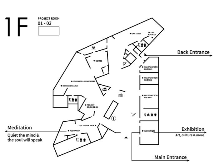 Meditaatiohuone sijaitsee yliopiston kirjastossa, sisäänkäynnin vieressä ensimmäisessä
