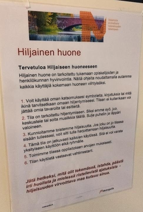 Käyttöohjeet Metropolian hiljaisessa huoneessa