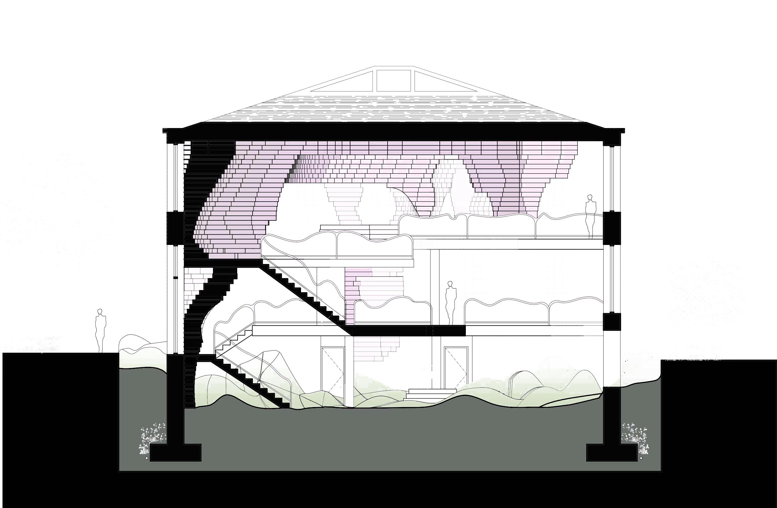 The "Garden beneath Ground" project aims to transform a historical two-story house located on Governor Island into an artist house and exhibition center for the public. The project's design focuses on the relationship between the ground and the existing site, bringing nature into the basement of the building and treating it as an outside open area within the space. This creates a new ground level that could serve as an art exhibition space connected to nature. The project's main objective is to research how to build within the natural environment and treat nature and building systems as an entire system rather than separate entities. Additionally, the project aims to discover future green architecture system development possibilities. Overall, the "Garden beneath Ground" project is an innovative exploration of how to create a harmonious relationship between architecture and the natural environment, paving the way for future sustainable architectural design.