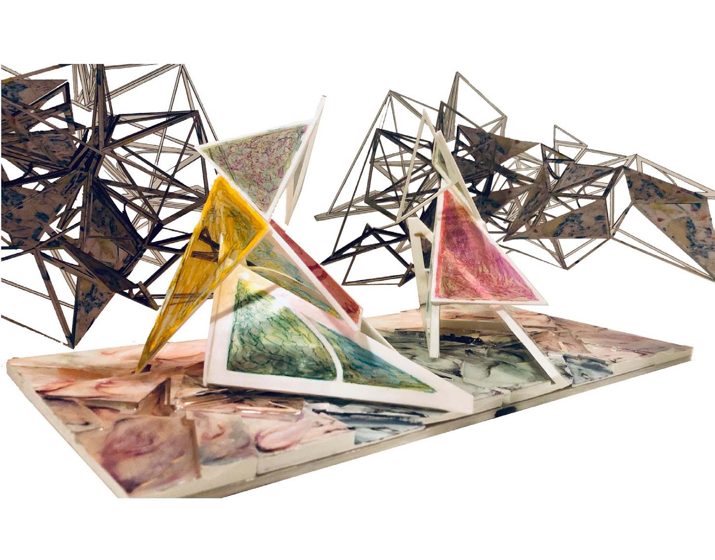 The "Flower" project is an innovative exploration of design themes using basic triangular forms. Inspired by butterflies and flowers, the project combines varied sizes of triangles in multiple ways to create unique and visually appealing designs. The use of triangles to outline the shape of the flowers adds an additional layer of creativity to the project. It is divided into three sections - the resin and acrylic painting substrate representing the flower, the vertical triangle inspired by Mexican butterflies, and the backdrop that serves as the project's stage. Using 2D lines and the same language to construct the stage, the project creates a captivating visual experience that immerses viewers in a triangle universe. Overall, the "Flower" project showcases the versatility of basic triangular forms in design, making it a creative and engaging endeavor with the potential to captivate its viewers.