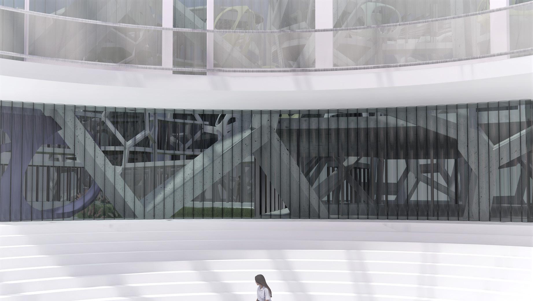 To meet the client's requirements, our design team has created a concept that utilizes a curved line curtain wall inspired by ocean waves. This facade will serve to attract new customers and allow natural light to permeate the exhibition room and interior showroom area from various angles. We have made the space entirely open with a 20-foot clear height, providing an ideal environment to display furniture during both daytime and nighttime hours. The result will be an exceptional shopping experience for visitors. In summary, this project involves the addition of an exhibition space and renovation of the existing office area, all while incorporating a striking design inspired by ocean waves. The result will be a welcoming and visually captivating environment that will attract new customers and display furniture in the best possible light.