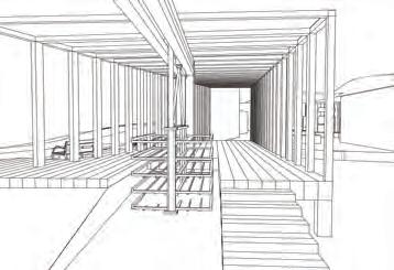 A design for a boathouse at Bald Eagle State Park which conceptually represents material state change and substance density within architecture by using solid masses to create space that flows. The structure stores and launches kayaks for use by park patrons during the summer months. The design also features a custom kayak rack which can be manually lowered into the water into order to release the kayaks.