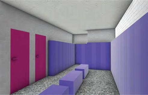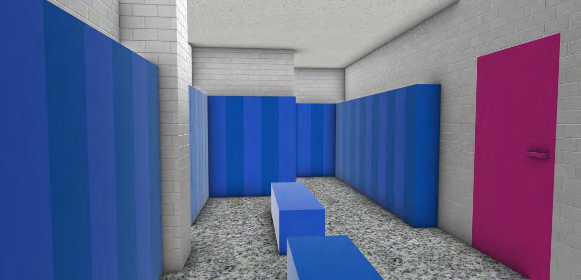 An updated and improved design for the men’s and women’s locker rooms at the YMCA of Indiana County in Indiana, PA. These renders were generated from plans using Rhino and were utilized in a project proposal from UpStreet Architects which was accepted by the Indiana County YMCA Board of Directors. The colorful doors, benches, and lockers in this project were requested by the client in order to bring life, vibrancy, and a sense of playfulness to the building.