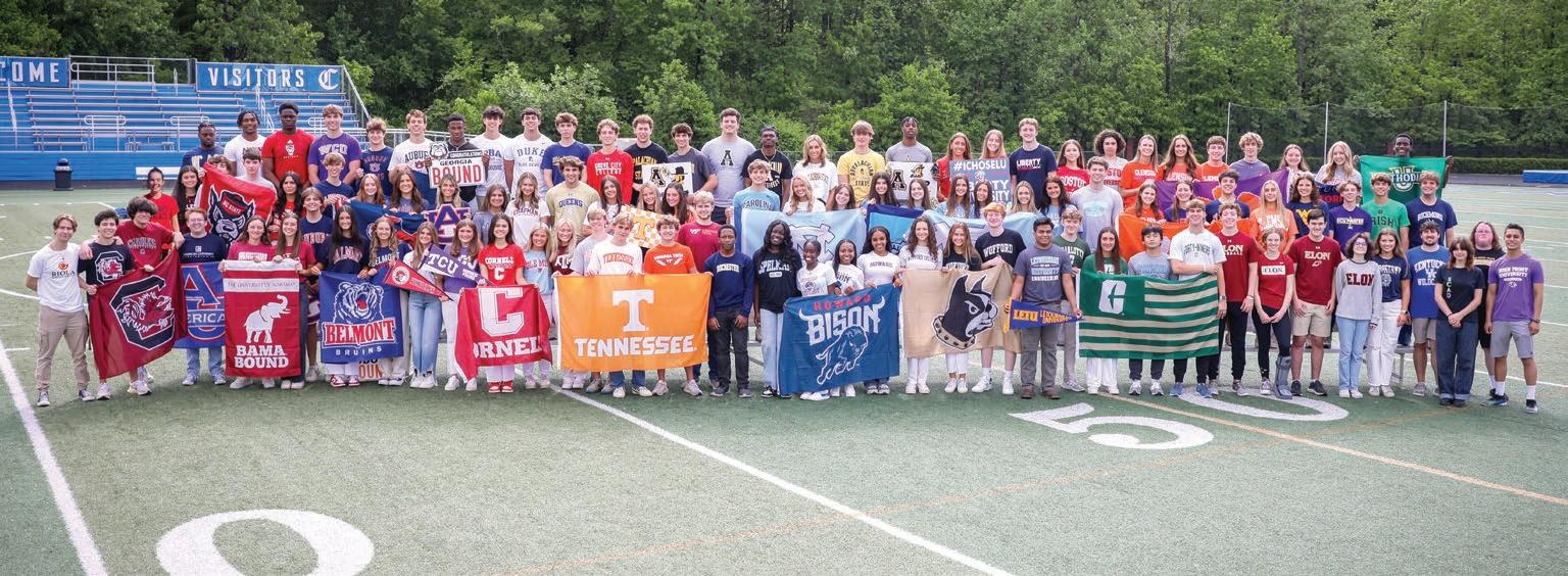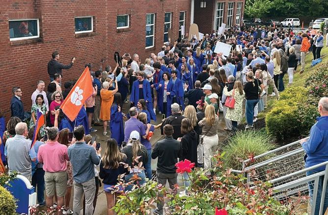 The sixth annual Senior Walk held a special place in the hearts of both students and faculty alike. It was a day when the graduating seniors took a stroll down memory lane, retracing their footsteps through the halls in the lower, middle and upper school. The Senior Walk celebrated the journey of the class of 2023 and the whole campus came alive to cheer on the seniors. After starting in the Early Education Building, they processed through campus and ended on the stadium field where both the seniors and their parents took a moment to pray over each other and launched the seniors into their college career. Afterwards the annual senior class picture was taken to showcase the T-shirts of the seniors’ college choices.