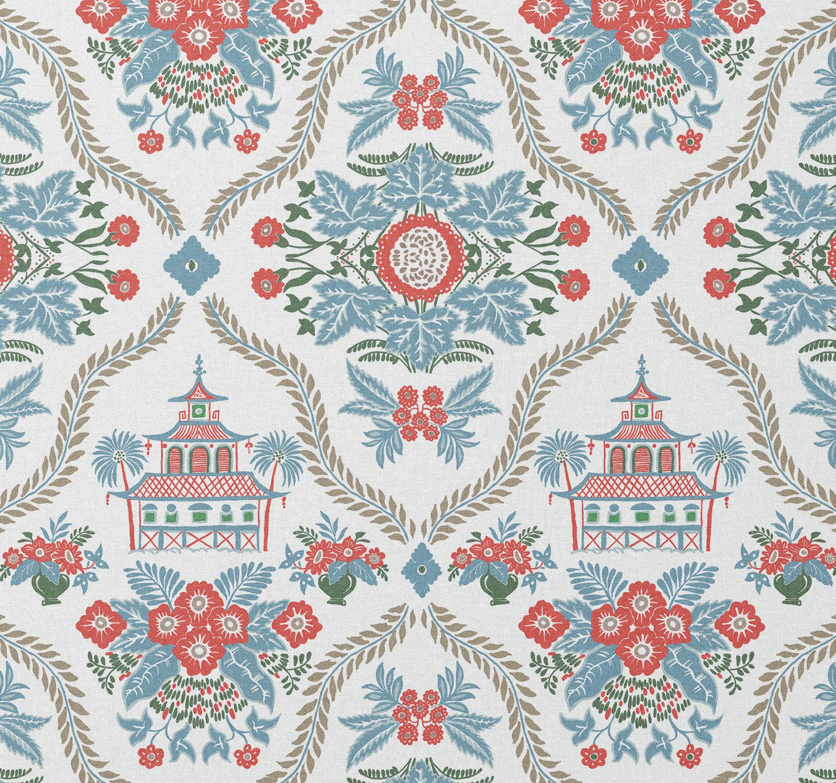 Battersea Flower red 52cm wide by 10m long-21 inches wide by 11 yards