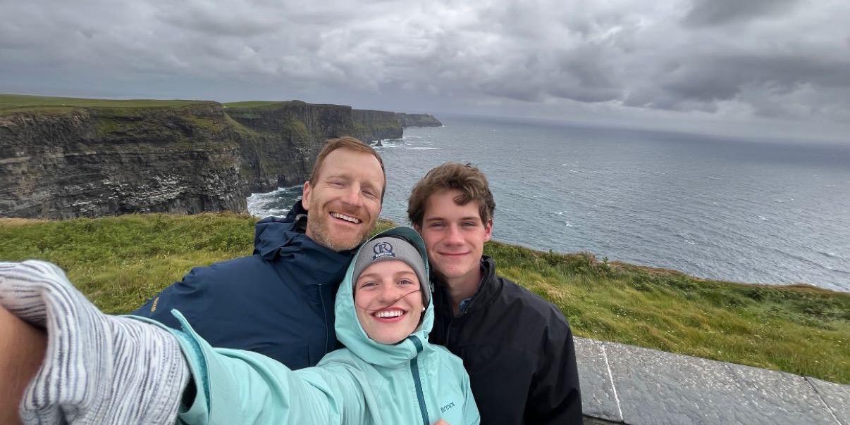 Helen Hurden tries fresh coconut water with her parents and her sister, Hannah Hurden ‘25, on a biking trip in Thailand. (Helen Hurden)