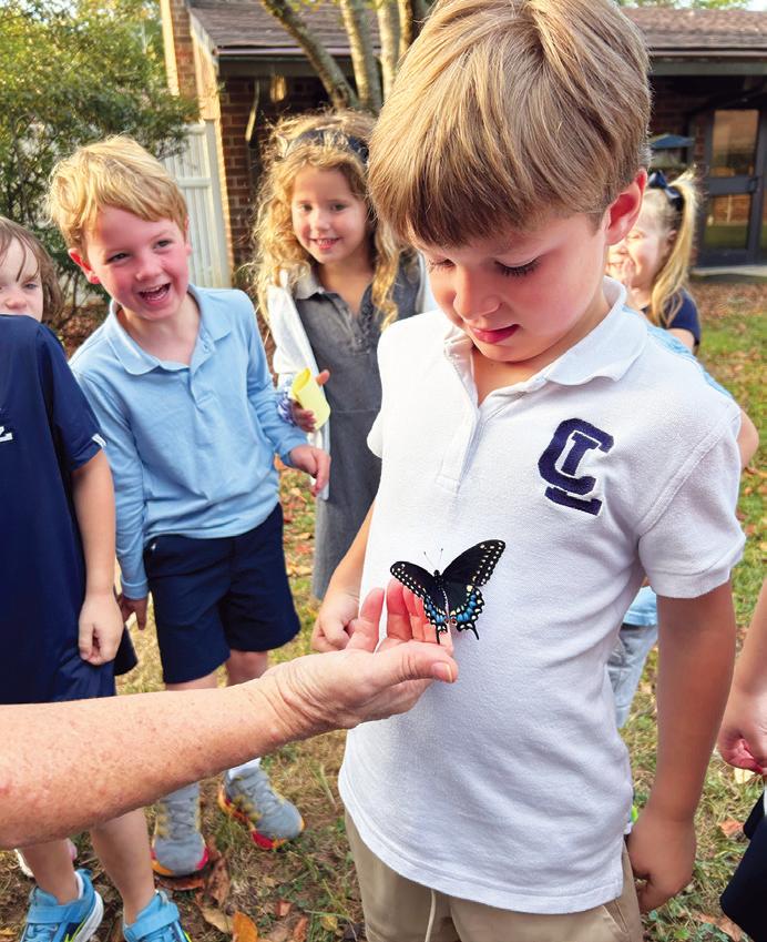 On the Cover: Curiosity — whether it's centered on language, science, or art — leads to creativity and discovery. Middle School students Sophia B. and Grace M. are surrounded on our cover by flora and fauna from the artwork of Henry (in first grade) and Charlotte, Jack, Linkyn, and Tessa (in Kindergarten).