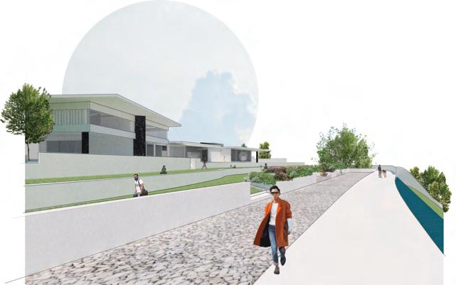 Depicting the relationship between the archaeological hill and the inward facing wellness courtyard, as well as the embedded nature of the overnight rooms and the hot springs in the basement.