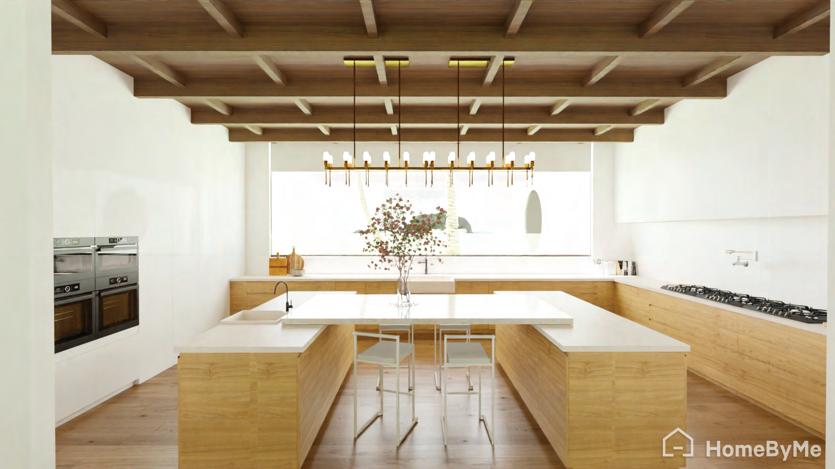 Gambian beach house kitchen renovation, with an integrated kitchen island and dining table worktop.