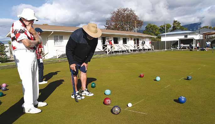 A little later, at Pōhara Bowling Club, competitors were just emerging from their morning tea break to begin their second session. As bowls and mats were being organised, club president Bob McTaggart and secretary Jenny Westrupp looked on from the clubhouse. “It’s going very well,” said longserving Jenny, who was made a life member of the club in 2018.