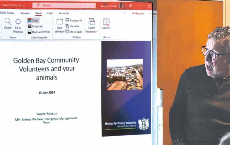 Kathy King, emergency management advisor, began by explaining that CD is not a "magic army turning up in an emergency". It is about setting up support for communities to help themselves in an emergency, with trained council staff overseeing the management. CD's regional team of five and a half permanent full-time staff, which covers 120,000 people in Nelson-Tasman, can increase to 80 in an emergency. Kathy said that CD wants to "build the welfare team in Golden Bay, particularly on the western side of Bird's Hill".