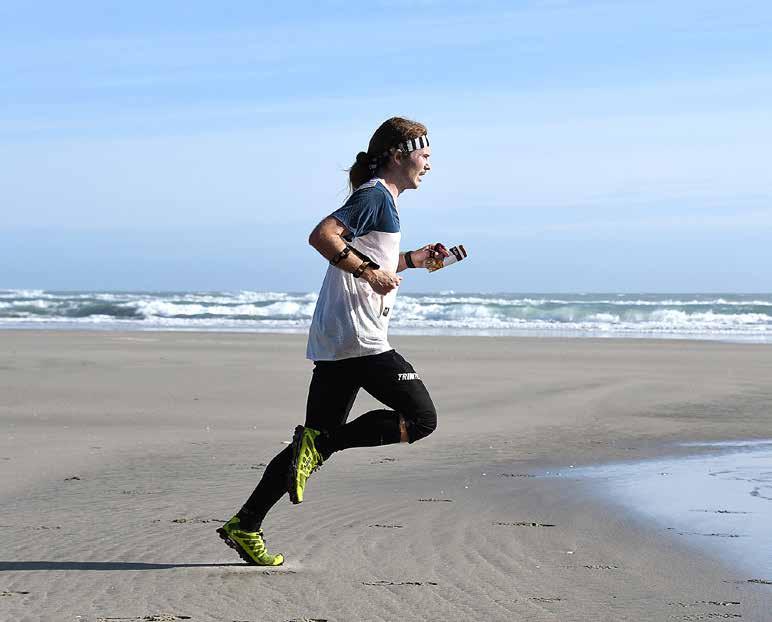 Oliver Egan from Peninsula and Plains Orienteers crosses Kaihoka Beach during last Sunday's long distance event. Photo: Jo Richards.