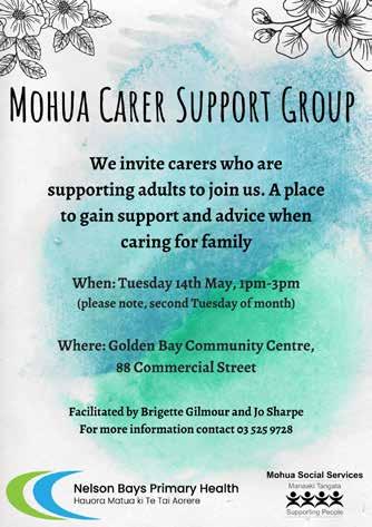 We’re your local OPEN 7 DAYS Mon-Fri 8.30am-5pm I Sat & Sun 9am-1pm 7 Commercial Street, Takaka Email:goldenbay@hammerhardware.co.nz Website: www.hammerhardware.co.nz Phone: 03 525 7265 Friday 10th May 4:00 Kung Fu Panda 4 (PG) Final 7:30 Civil War (R16) Saturday 11th 4:00 The Great Escaper (M) Encore 7:30 Back to Black (R13) Sunday 12th 3:00: Special Mother’s Day Event Titanic: The Musical $20/$15 Doors open 2pm for afternoon tea 7:30 Charcoal (R13) (subtitles) Back to Black (R13) Final healthpromo@screensouth nz Call 0800 270 200 to book or check eligibility 1 5 M A Y - 3 1 M A Y 2 0 2 4 B R E A S T S C R E E N I N G M O B I L E C L I N I C WHERE YOU CAN GET SCREENED: Golden Bay Medical Centre, 10 Central Road Tākaka