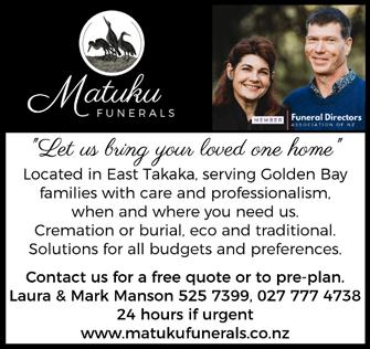 THE GB WEEKLY, FRIDAY 10 MAY 2024 1 Barry Graham I Ph 027 465 7888, 525 8787 Certifying Plumber, Gasfitter & Drainlayer www.goldenbayplumbing.nz