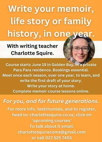 THE GB WEEKLY, FRIDAY 17 MAY 2024 2 warn & ASSOCIATES Specialised Accounting 03 525 9919 julie@warnassociates.co.nz 23 MOTUPIPI ST TAKAKA 7110, GOLDEN BAY www.warnassociates.co.nz Unbeatable Professional Qualifications Experience & Service