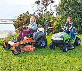 On the rampage: Raising money for cancer charities, from left, Pam Gardiner and Tracey Sickler, are riding their mowers 86km along the Molesworth Track on Saturday 19 October. Photo: Supplied.
