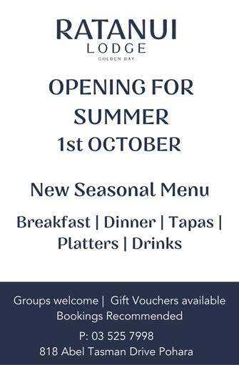 MOLLY B’S, Pōhara. Open 5 days from 9am, weekend brunch 9-11am. Tuesday open from 3pm. Closed Mondays. Ph 525 7678. NIKAU BAR AND CAFÉ, Pōhara. Open 7 days, 8.30am to late. Bookings ph 03 970 3992.