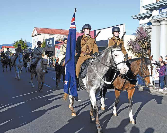 In a prelude to the 9am Tākaka service, to the sound of marches played by the Tākaka Citizens Band, the Tākaka Mounted Rifles group set off from Junction Green and made its way along Commercial Street to the Memorial Gardens, where hundreds of people had gathered. The horses, riders and foot soldiers were followed by a parade of veterans, current service personnel, emergency service representatives and community leaders.