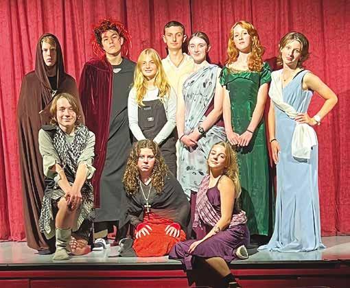 Teentheatre cast of Mythunderstood from back left standing: Ollie Tinkler (Charon); Squire Askew (Hades); Georgie Tinkler (Jamie); Nathanael Tait (Apollo); Zoe Hall (Demeter); Ruby Markham (Hera); Olive Markham (Fate). In front from left: Malachi Beckert (Achilles); Maggie Quinn (Persephone); Poppy Hughes (Helen). Photo: Submitted.