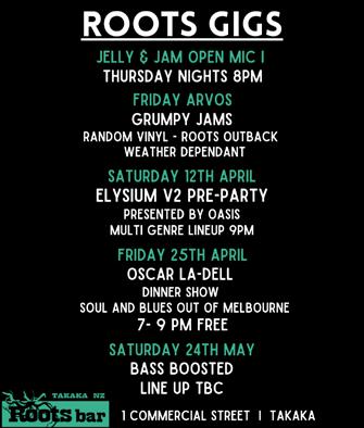 Sat 26th GB BLUEGRASS. for more details see www.musselinn.co.nz