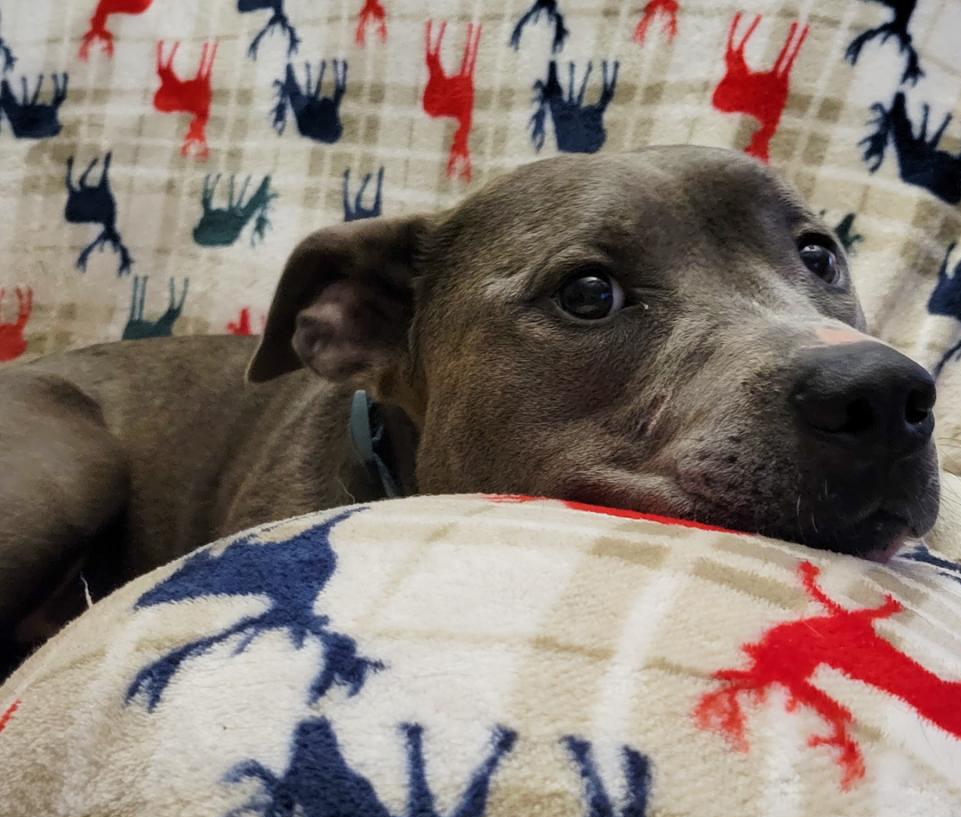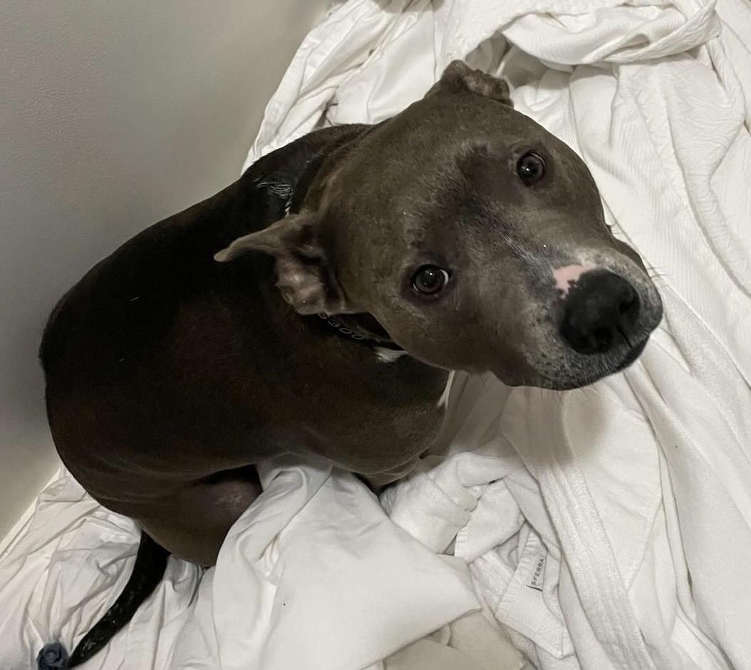 Dude Sir arrived at our shelter as a stray in November of 2022. As with many of our new arrivals, the shelter was a very overwhelming place for Dude Sir. The loud barking of his neighbors, accompanied by his unfamiliar surroundings, made him very anxious, resulting in excessive licking and weight loss.