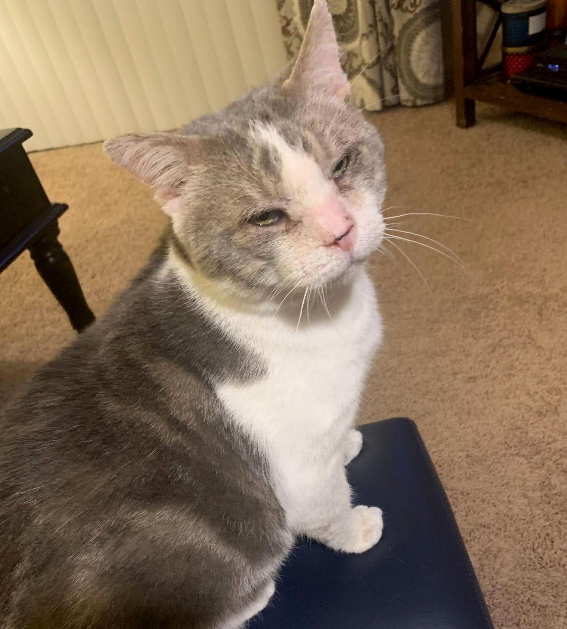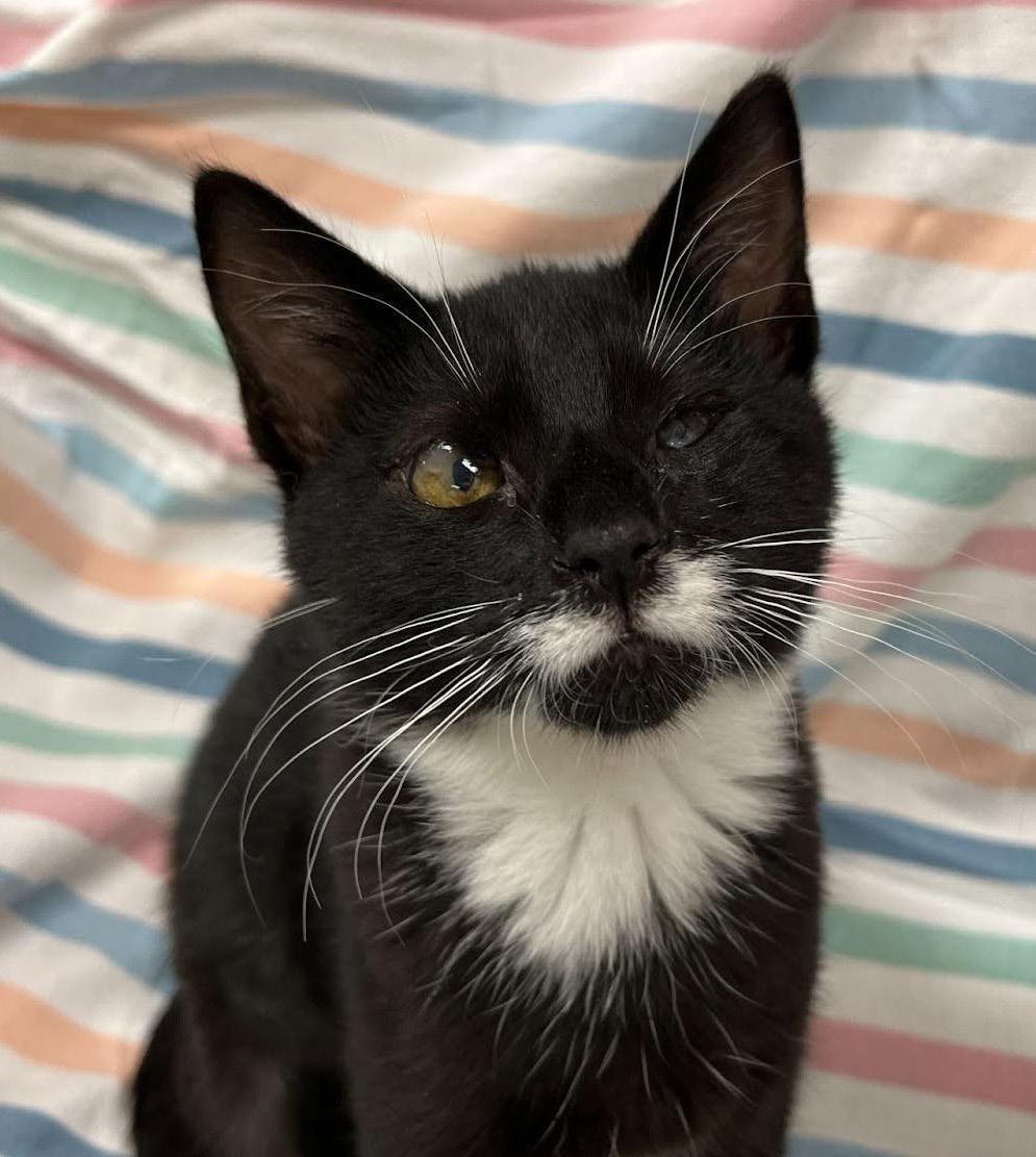 We met Cosmo (formerly known as “Snakes”) in June of 2023. He was brought to the shelter after being found roaming the parking lot of an apartment complex. Cosmo was looking worse for wear, presenting to our clinic with loud, wet breathing and discharge around his eyes and nose.