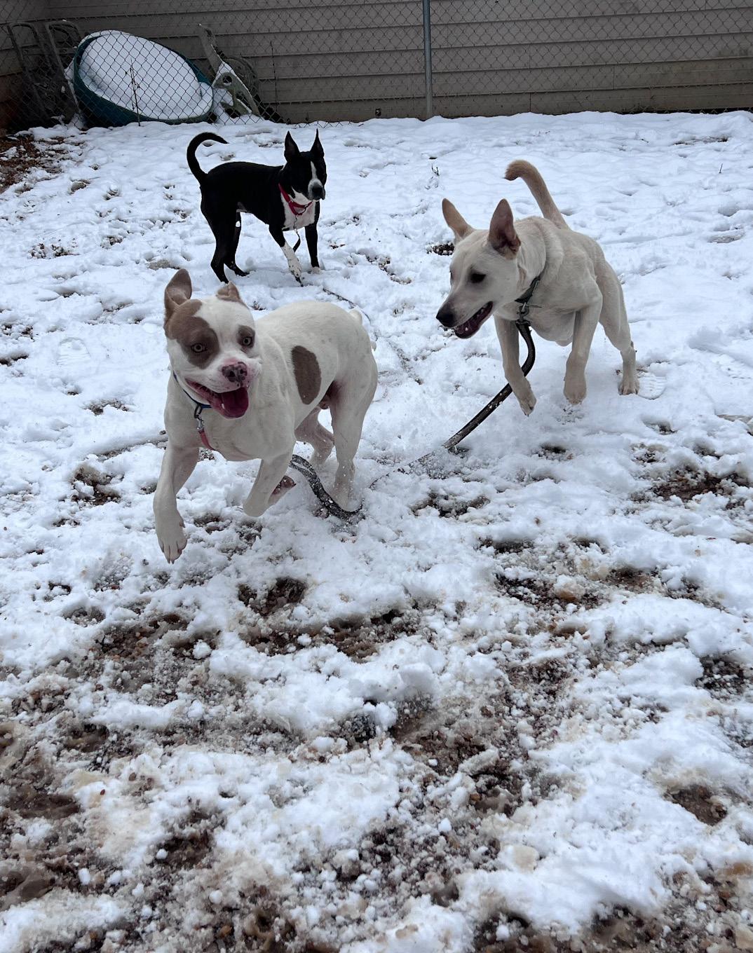 In September 2023, we enlisted the expertise of shelter consultant Ashley Niels to enhance our staff’s skills. Specializing in canine behavior and large dog playgroups, Ashley spent a week with our operations team, offering hands-on training in canine body language and playgroup dynamics. Our objective was to reintroduce regular multi-dog playgroups for our residents, and the training proved to be a tremendous success. Since then, playgroups have been held 4-5 times per week, expertly led by our Canine Enrichment Specialist, Abby Savage. We recently caught up with Abby to delve into the program’s outcomes.