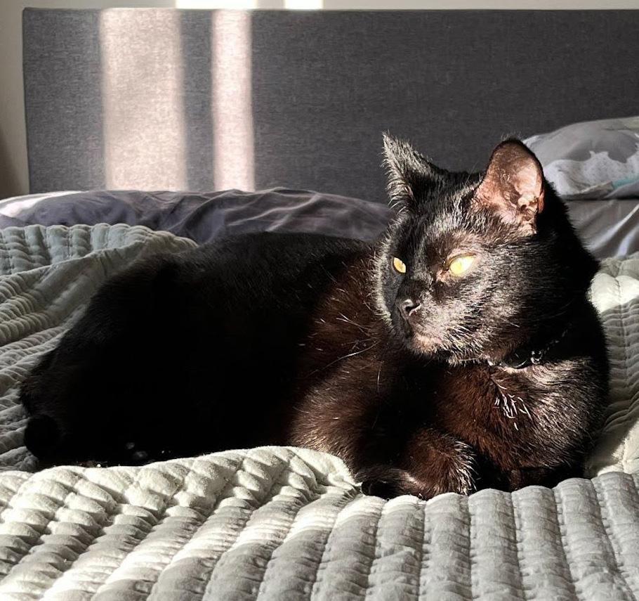 Shortly after walking in for her feline volunteering shift, Leslie spotted Cosmo in the cat rows. For her, it was love at first sight. Cosmo now spends his days puttering around her home, patiently waiting by his bowl for food and ice cubes. Leslie says, “He is the perfect gentleman, and I am so glad I picked him to be that second heartbeat in my apartment!”
