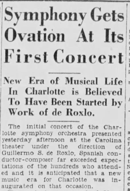 90 years ago, on March 20, 1932, 57 local musicians gathered on stage for the inaugural concert of the Charlotte Symphony. The skies were cloudy on that Palm Sunday afternoon as hundreds of Charlotteans poured into the Carolina Theatre on Tryon Street to survey the new orchestra. The free concert was led by founding Music Director Guillermo de Roxlo, a recent immigrant to the United States and an accomplished conductor and composer.