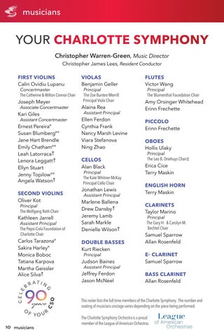 YOUR CHARLOTTE SYMPHONY Christopher Warren-Green, Music Director Christopher James Lees, Resident Conductor FIRST VIOLINS Calin Ovidiu Lupanu
