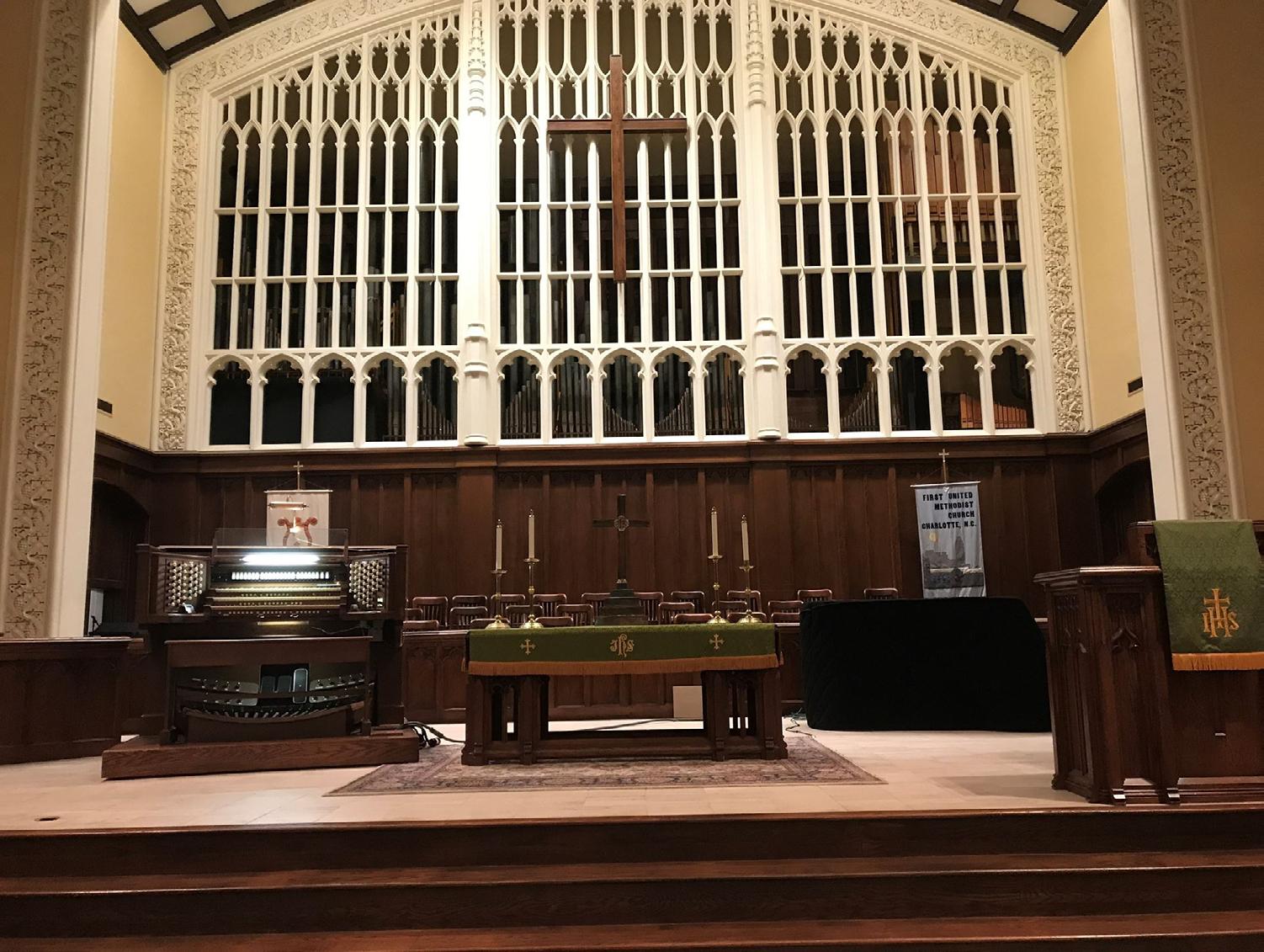 The 3-manual, 60-rank M.P. Möller organ at First United Methodist Church Charlotte was completed in June 1967 and replaced a 4-manual Hook & Hastings. The September 10, 1967 dedication concert was played by Dr. George Markey of Westminster Choir College. The instrument presents itself as historically and locally unique in construction quality among other instruments of the same era. It represents a creative pinnacle in J.P. Möller tonal design, with inherent versatility towards multiple musical styles from Renaissance polyphony to the smorgasbord of late 20th and early 21st century classical music, making the instrument a true American classic pipe organ. This weekend’s concerts mark the instrument’s 55 th anniversary.
