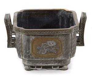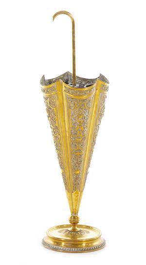 Japanese Parcel-Gilded Silver Vase, Signed Showa period, modernist geometric design with butterfly; H9 1/2", and 26.5ozT