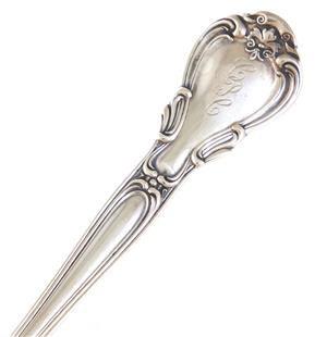 French Silver Ladle, T.V. Dutrevis 19th century, engraved with initial B, and complete marks and 1st standard (950/1000); L12 1/2"4.7ozT