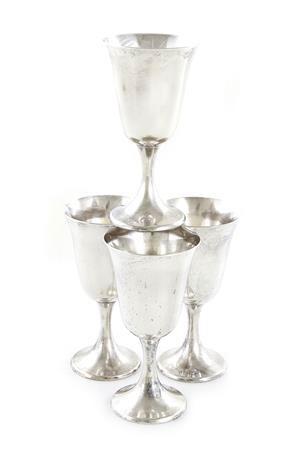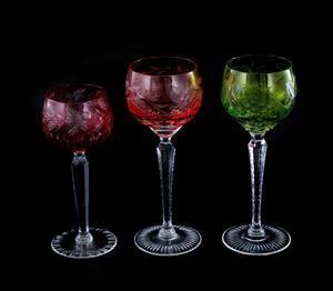 English Intaglio-Cut Crystal Goblets attributed to Thomas Webb, each vignette of foxhunt scenes; unsigned; H6 1/2" (4pcs)