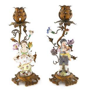 Bow Porcelain Figure of Ceres, and Candlestick circa 1760-70, standing figure unmarked, H8"; and candlestick with with lamb with bocage, H9"