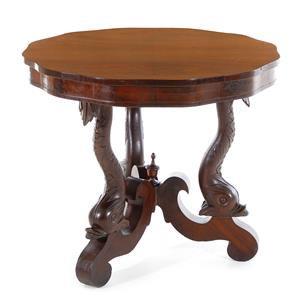 mid 19th century, eagle pediment and scrolling acanthus design; H30 1/2" Dia.20" D4"