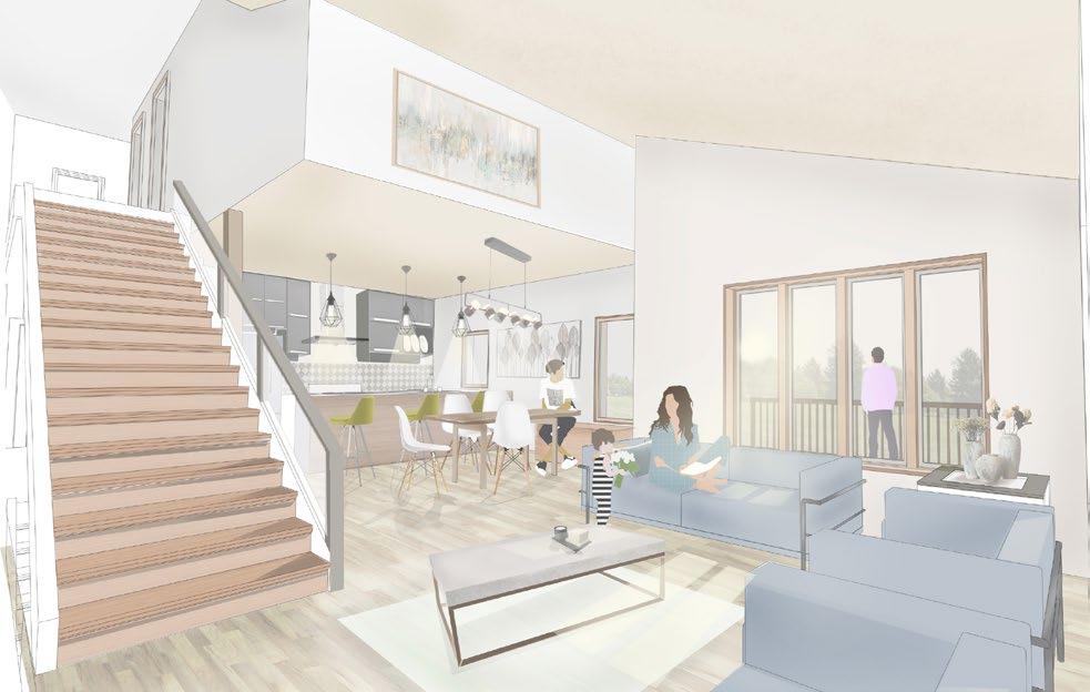 The Moscow Affordable Housing Trust is a twin-house unit located in Moscow, Idaho. The project challenged us to satisfy the needs of the client to include having one ADA accessible bedroom & bathroom on the first floor, along with a community gathering space. Our team of final year undergraduate students were successful in providing spacious bedroom on the first floor with barrier-free circulation between the kitchen, dining, living, and personal deck area for the client. The shared entrance allowed for community interaction.