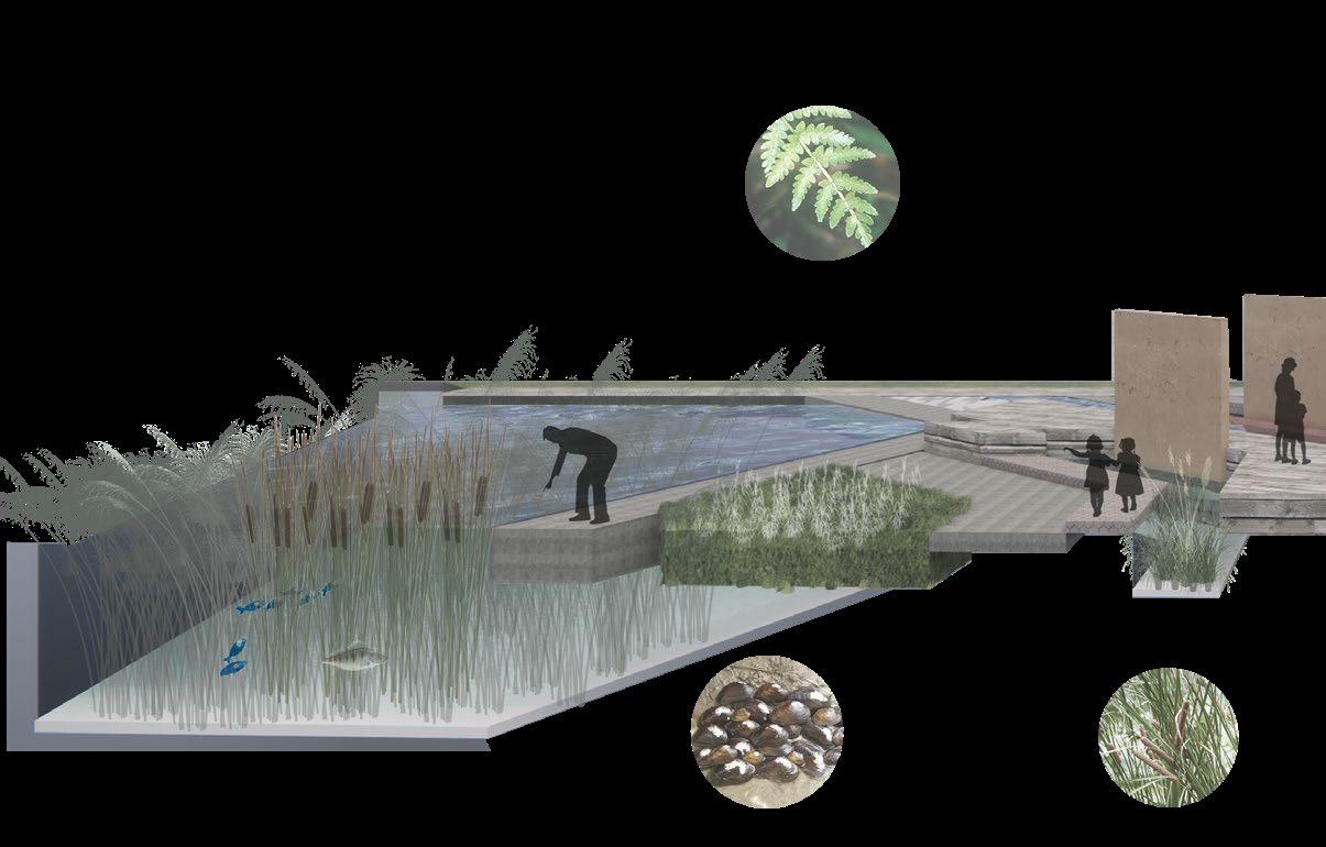 Constructed Wetland Recycled coal-ash Permeable Pavers Cutgrass, Rice Button Bush