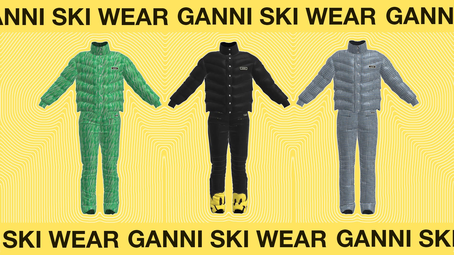 Our classic pieces and bestselling patterns inspire GANNI's ski wear collection. The 6 new styles this season include matching jackets and trouser with a flattering fit that's comfortable, and functional to wear in the cold.